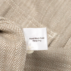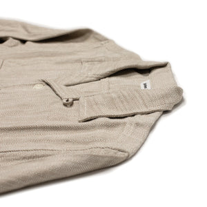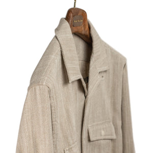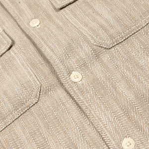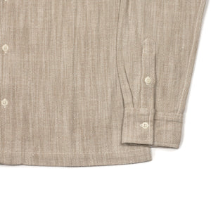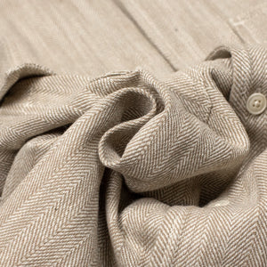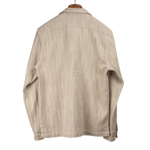 Long sleeve camp shirt in ecru cotton/linen herringbone twill