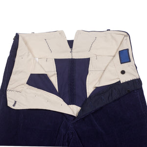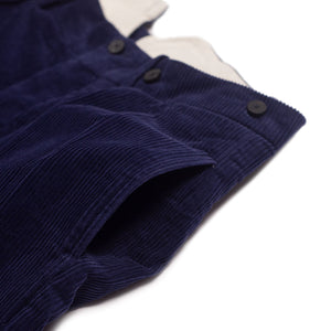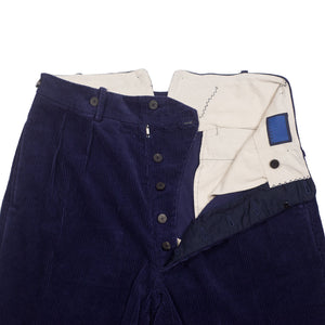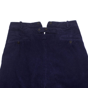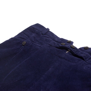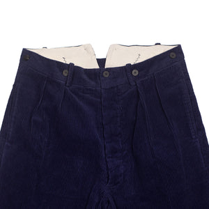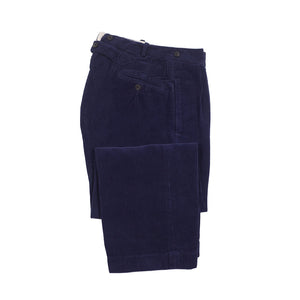 "50's Military Trousers" in garment washed navy blue Japanese corduroy