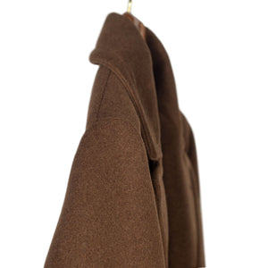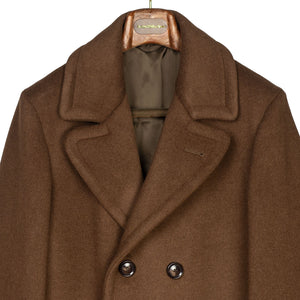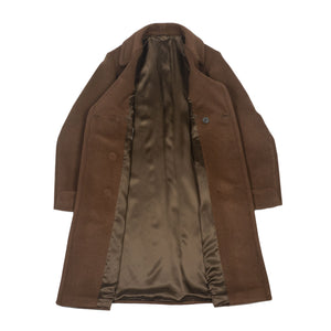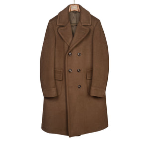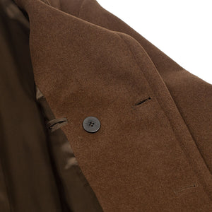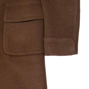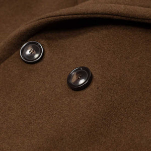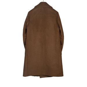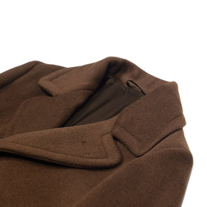 A beautiful, modern take on the polo coat, simplifying the cut and details to focus on the striking melton wool volumes and collar shape.