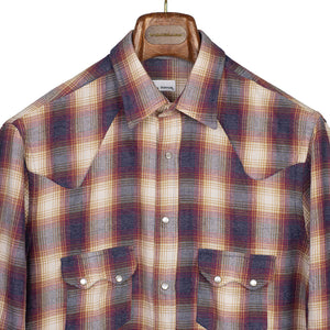 We've really been into Western shirts these last couple of seasons. They pair really well with casual outfits but also layer nicely in a more mixed-style look. This one is is beautifully done with a beefy cotton fabric with a unique gradient check, soft-rounded yoke and pocket shapes and on-point details that we've come to expect from Alain Fracassi.