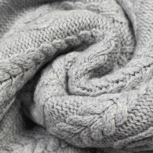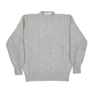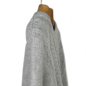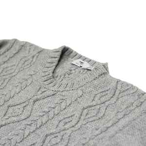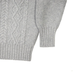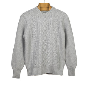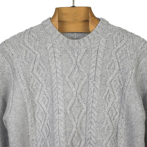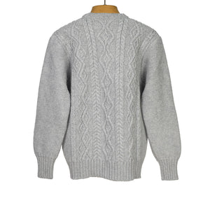 Aran Cable crewneck sweater in "Oyster" grey merino wool