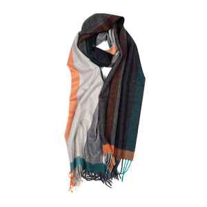 "Arran Mack" cashmere scarf in Orange and Green color palette
