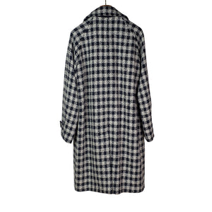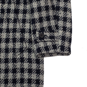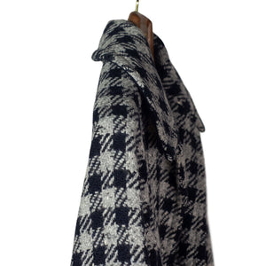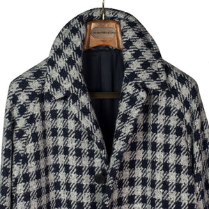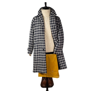 Balmacaan single breasted overcoat, grey & midnight checked wool