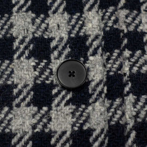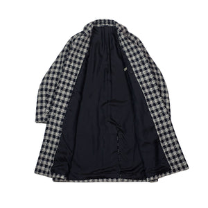 Named after the Balmacaan estate near Inverness in Scotland, the "Bal" coat is a looser fitting, somewhat flared, single-breasted overcoat with raglan sleeves and a Prussian collar. This perfectly executed version allows Yasuto Kamoshita to bring in his tasteful sense of color and texture with this checked pattern and soft wool tweed textures.