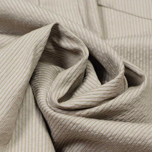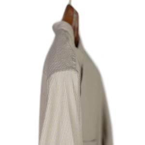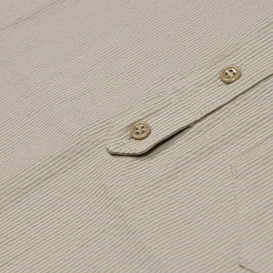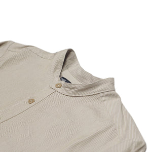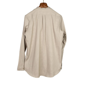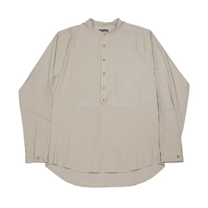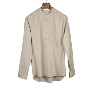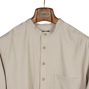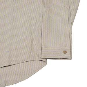 Band collar popover in deadstock tan and beige stitched stripe cotton