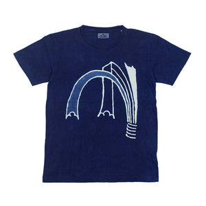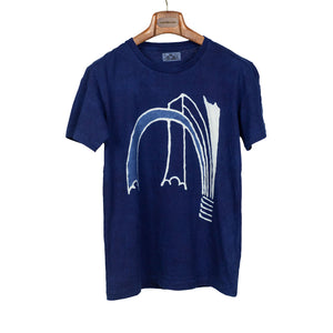 Utilizing the bassen relief dying process, Blue Blue Japan hand-dye this t-shirt indigo, leaving behind a traditional Noshi print.