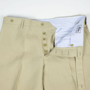 Irish linen has a completely different hand and feel from Italian linen. It is heavier, stiffer and holds a crease well. These trousers are cut in a slim, flattering pattern.
