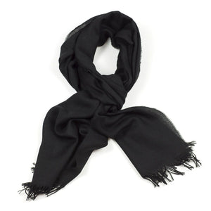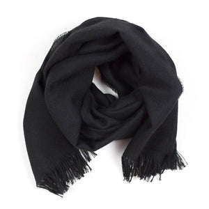 This large and light scarf features a unique combination of light weight, luxurious hand and the modernity of a black stitch
