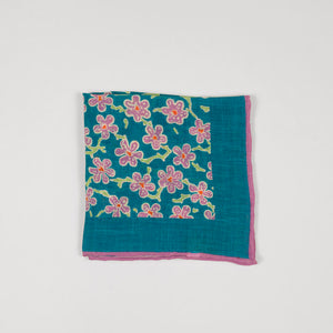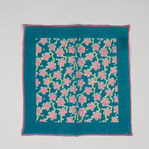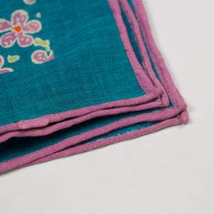A lively summer square, all linen with a contrasting edge and colorful flower print.