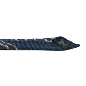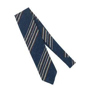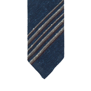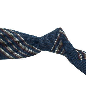 Blue shantung silk grenadine multi-stripe tie, hand-rolled & untipped