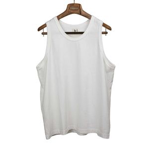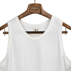 "We continue our foray into tank tops, done in our favorite fabric from blurhms. The premium thicker cotton jersey used sepertes this from your average ribbed tank, plus the higher U creates a more flattering shape to wear under an open shirt."---Kenshawn