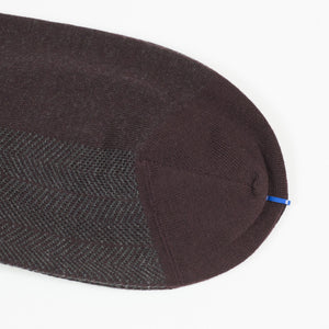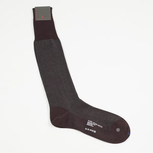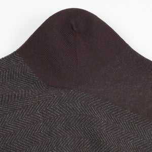 These over-the-calf socks mix burgundy and grey in a classic herringbone pattern. Made in Italy of fine wool with some nylon for better performance, the toes are hand-linked for wearing comfort.