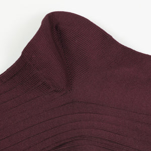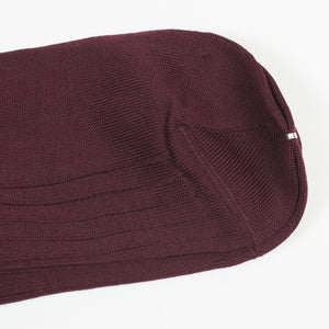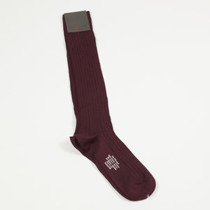 These over-the-calf socks mix are made in Italy of burgundy "Fil d'Ecosse" cotton with some nylon/stretch for better performance. The ribbed texture and hand-linked ensure the best wearing comfort.