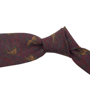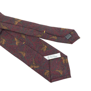 A lovely hand for this wool tie, hand-printed with a seasonal hunting theme. As always with Calabrese, the structure is as soft as it gets, for a comfortable feel. Pair it with a fall sport coat or flannel suit.