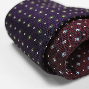 An easy tie to match with more conservative outfits and more casual jackets. The hand is nicely textured and the motifs are small and tasteful