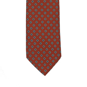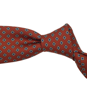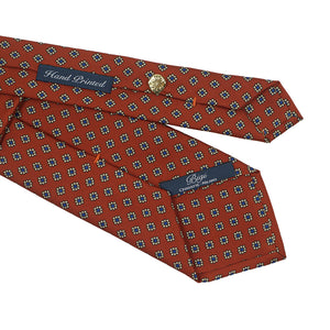 Burnt orange 36oz silk tie, hand-printed neat pattern