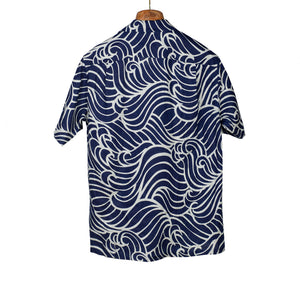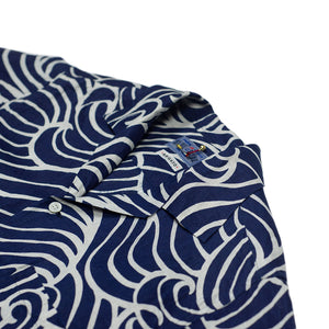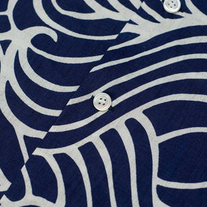 Capri collar camp shirt in indigo bassen-dyed wave pattern linen