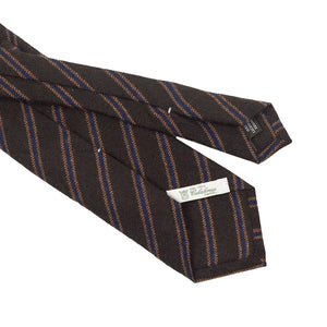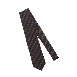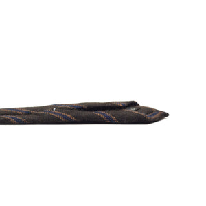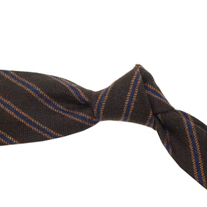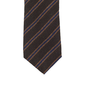 Chocolate brown pure cashmere tie, blue & caramel stripes