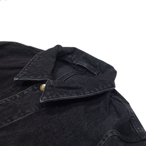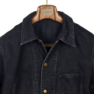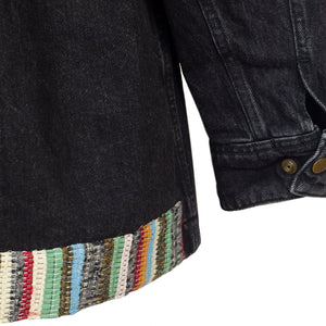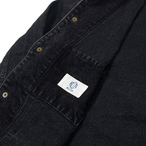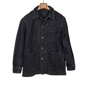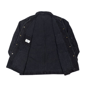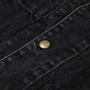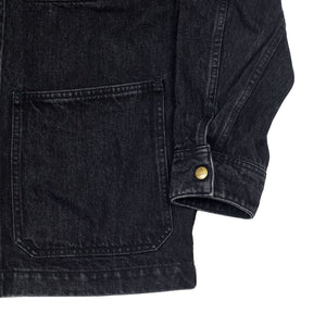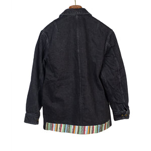 This jacket is all business in front and party in the back. Kuon starts with a traditional chore coat style made up in denim woven on Japanese shuttle looms, then washes it extensively and finishes things off with a handwoven sakiori detail on the back.