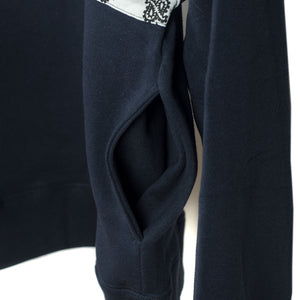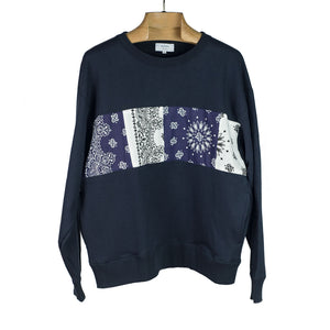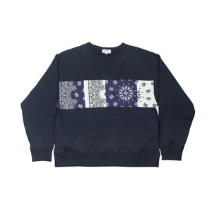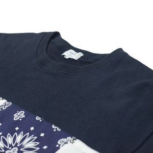 Fitting in nicely with their other repurposed cut and sewn items, Niche uses American made bandanas as trim on this classic crewneck sweatshirt.