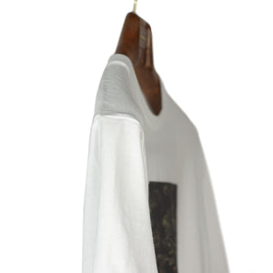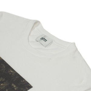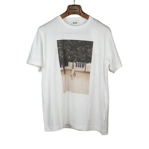 Crewneck t-shirt in white cotton with "newspaper man" photo print