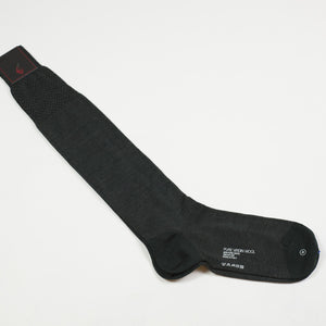 These over-the-calf socks mix green and grey in a miniature birdseye pattern. Made in Italy of fine wool with some nylon for better performance, the toes are hand-linked for wearing comfort.
