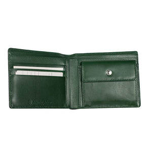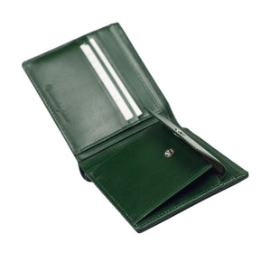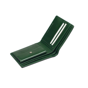 "Deater" billfold wallet with coin purse in bottle green shrunken leather