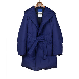An awesome evolution of the robe coat, this is as close to wearing an actual duvet as you're going to get. Document uses a premium duck down to fill out the coziest shape possible, and the shawl collar continues up into a hood to protect you from the cold.