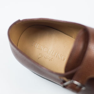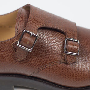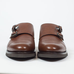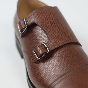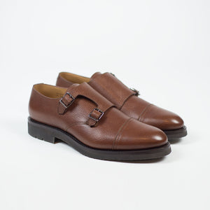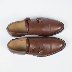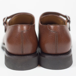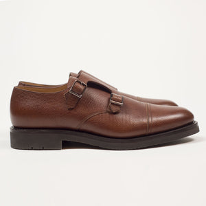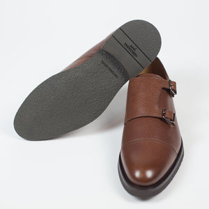 Erable double monk in brown hatch grain leather, natural rubber sole