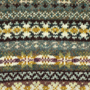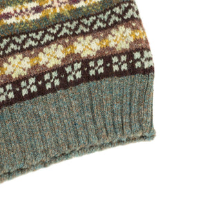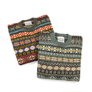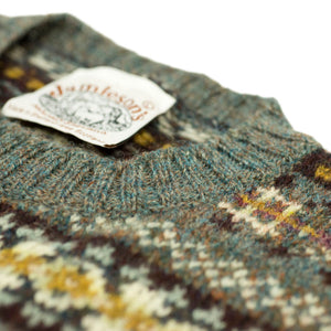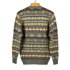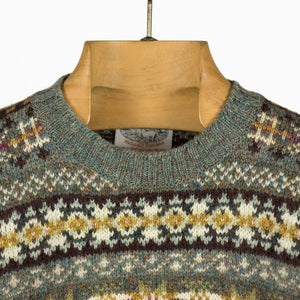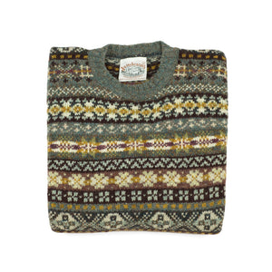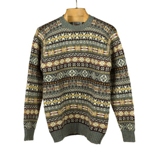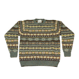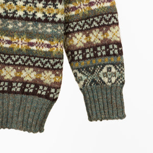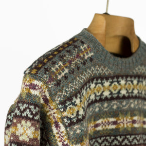 Fair Isle crew-neck sweater, green, brown, purple & mustard
