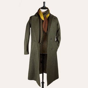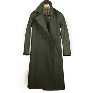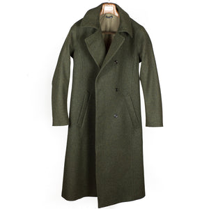 A monster of a coat, this double breasted officers coat is outstanding in this sturdy green tweed made by two forester brothers in the Bavarian Forest.