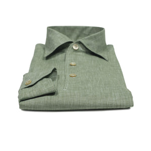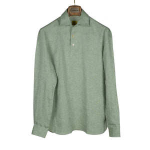 Inspired by the late Gianni Agnelli's polo shirts made out of shirting fabrics, this popover shirt is cut in a wonderful linen fabric and features a one-piece Capri collar, hand-sewn in five primary areas with painstaking attention to detail.