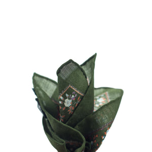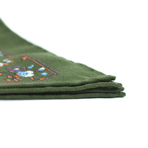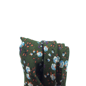 A tasteful pocket square, with the great hand of wool/silk blends and a colorful print.