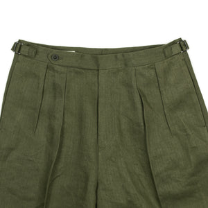 "I'd be lying if I typed that these were 'lightweight' or 'light wearing' - and that is really the beauty of these. Kaptain uses their superb gurkha shape to exhibit their weighty linen herringbone cloth. The weight only aids in the exquisite drape of the fabric and prominently displays the herringbone. Put some miles on these and post your progress on social, I know these are going to wear in nicely."---Kenshawn
