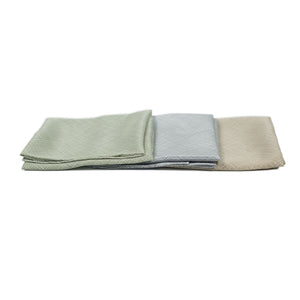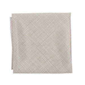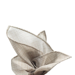 A sophisticated alternative to solid squares. In the pocket, this looks like a quasi solid square, in a soft and matte finish silk. Looking closely, one notices that the color is brought by a fine grid of hand-drawn lines, printed on a solid silk square.