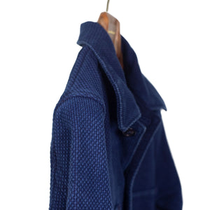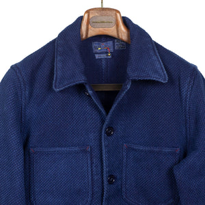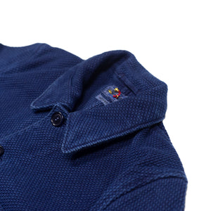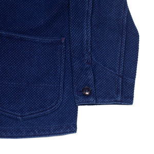 Every season we look forward to Blue Blue Japan's chore coats, and this one does not disappoint. Made up in a heavier "big" sashiko, the added texture gives it almost a corduroy effect along with the expected softness. Hand-dyed in natural indigo, it will only get better with age.