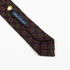 A distinctive tie with texture and rich colors. Hand-printed motifs