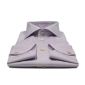 This handmade shirt is in a league of its own. It is cut in an elegant and versatile blue striped Alumo fabric, and entirely hand-sewn with painstaking attention to detail.