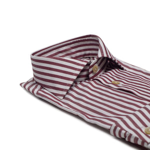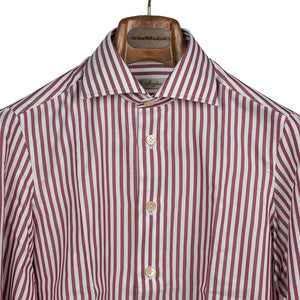 This handmade shirt is in a league of its own. It is cut in a rakish bengal striped Bonfanti 120/2 twill fabric, and entirely hand-sewn with painstaking attention to detail.