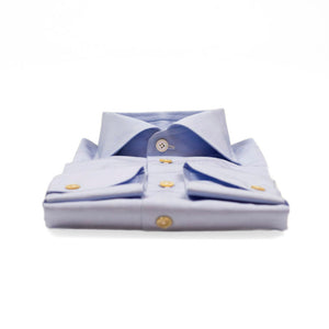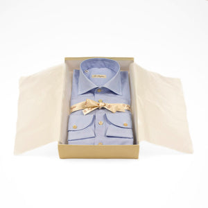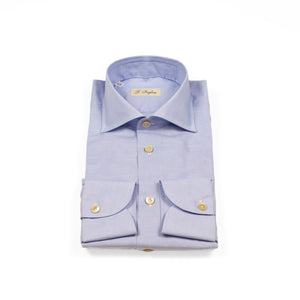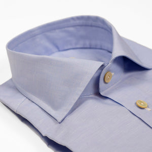 Hand-sewn light blue cotton/linen shirt, spread collar