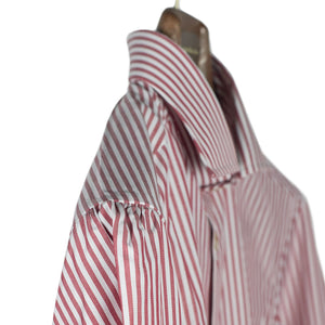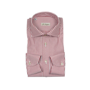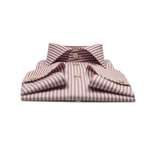 This handmade shirt is in a league of its own. It is cut in an elegant and versatile burgundy striped Soktas Leeds fabric, and entirely hand-sewn with painstaking attention to detail.
