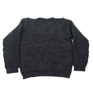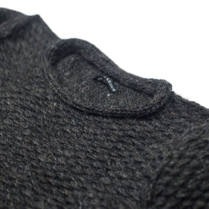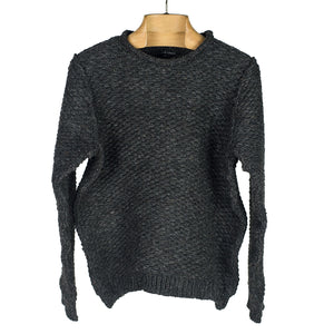 We have it on Frank's authority that these are handknit by "lovely old ladies in Berlin" and you can tell a lot of care went into them. This is his classic crewneck sweater, only knit inside out to show the full depth of the melange yarns.
