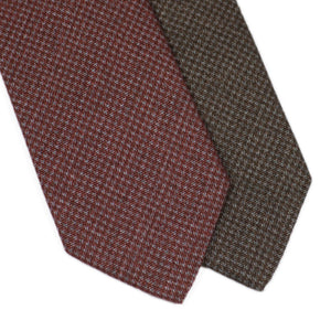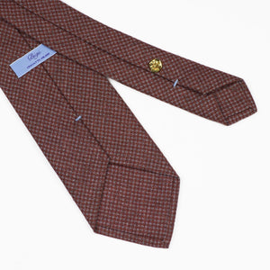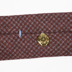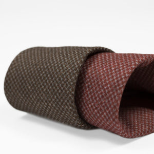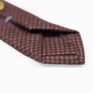 We love the distinctive weight and hand of this cotton tie. The ground has a herringbone weave, and it is then printed with a small gingham pattern