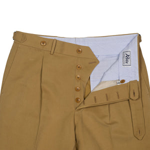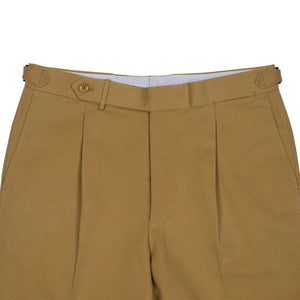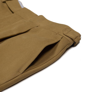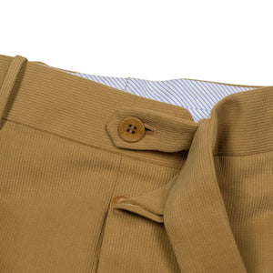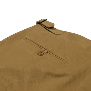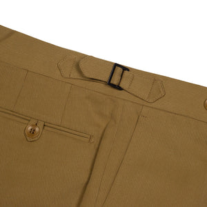 A favorite trouser cloth for bespoke connoisseurs, bedford cord brings just the right texture and drape, between a cotton twill and a chunkier corduroy . These versatile trousers are cut in a moderately slim pattern from a medium weight cotton cloth and feature an extended waistband closure, shirt-stripe lining among numerous thoughtful details.