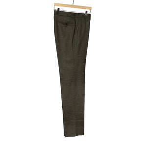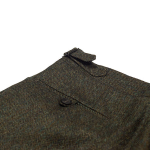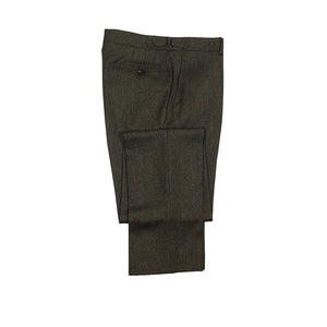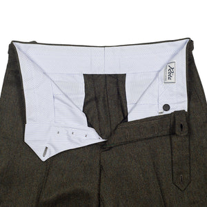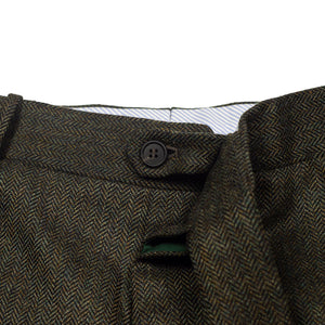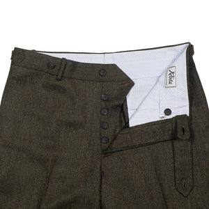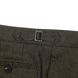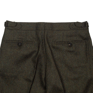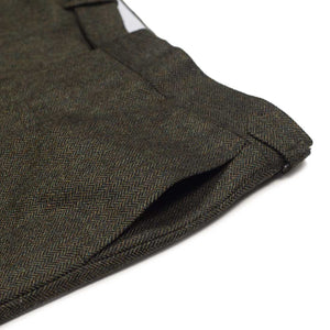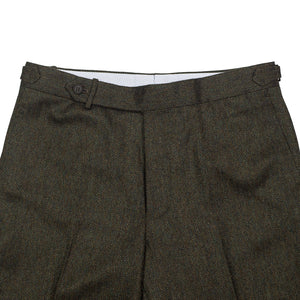 Higher-rise green herringbone flannel wool trousers with side tabs