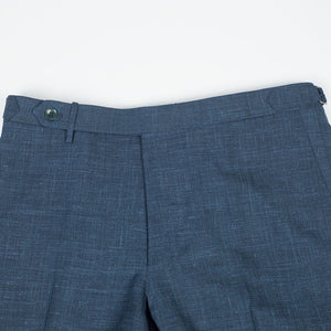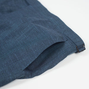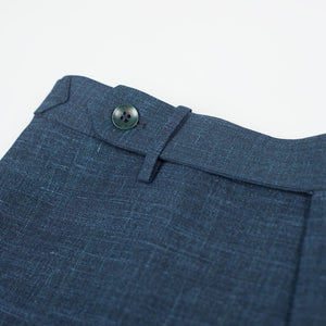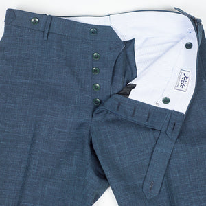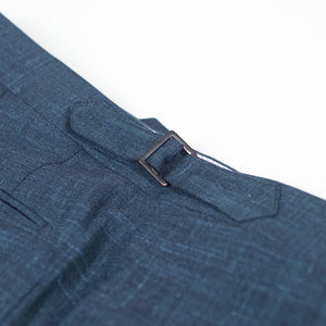 For those who prefer to go sans belt, these wool, silk, linen trousers are cut in a slim pattern with higher rise and side adjusters - a cut and style so hard to find for cotton trousers. Like their wool brethrens, they feature an extended waistband closure, shirt-stripe lining among numerous thoughtful details.