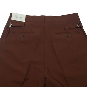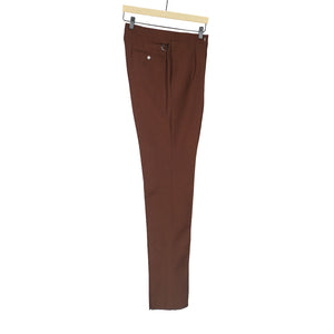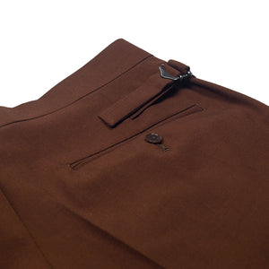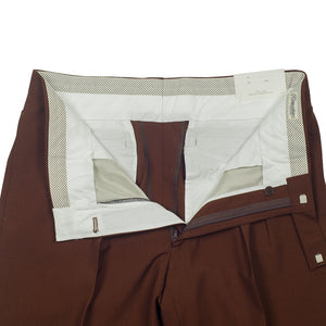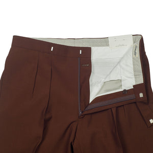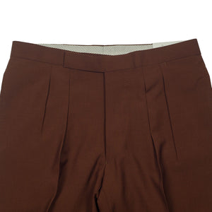 Higher-rise pleated trousers in chocolate brown tropical wool (separates)