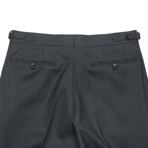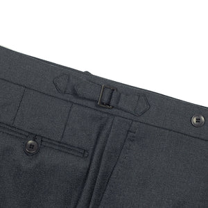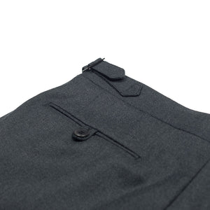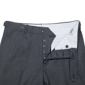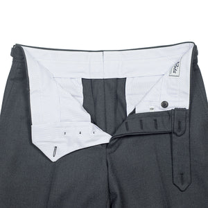 For those who prefer to go sans belt, these wool trousers are cut in a slim pattern with higher rise and side adjusters. Cut from a medium weight cavalry twill cloth, they feature an extended waistband closure, shirt-stripe lining among numerous thoughtful details.