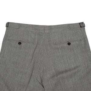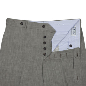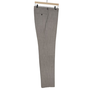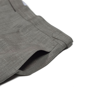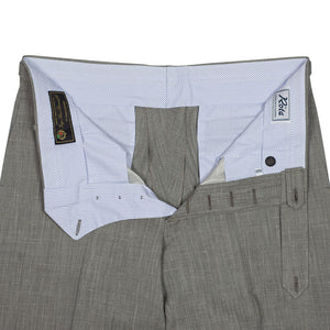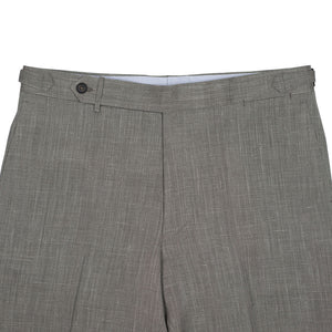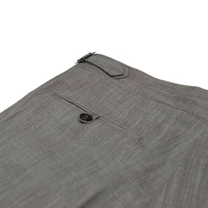 For those who prefer to go sans belt, these trousers are cut in a slim pattern with higher rise and side adjusters. Cut from a versatile and comfortable wool/silk/linen cloth, they feature an extended waistband closure, shirt-stripe lining among numerous thoughtful details.