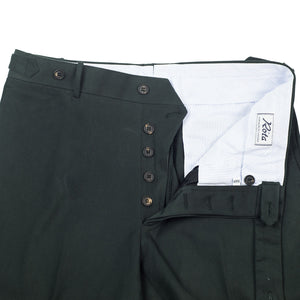 Higher-rise vert-de-gris heavy twill cotton trousers with side tabs